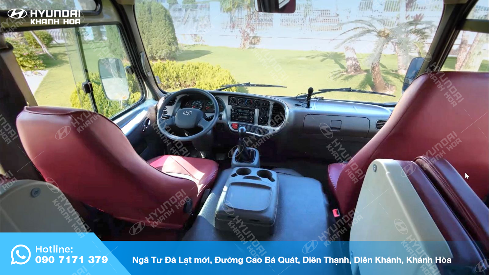 Cụm đồng hồ trung tâm hiện đại và sắc nét. Vô-lăng hai chấu đặc trưng của County được kế thừa, kết hợp với ghế lái điều chỉnh theo vị trí ngồi mang đến tư thế ngồi thoải mái cho người lái.