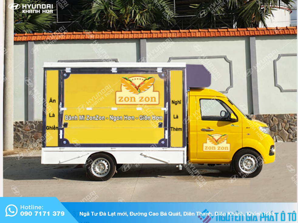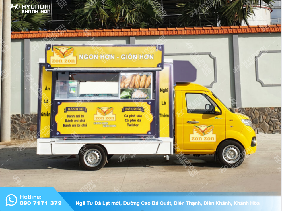 Ngoài ra cửa sau có thể mở ra với một khoảng trống khá rộng bên trong xe để người bày bán có thể dễ dàng thao tác và bán hàng.