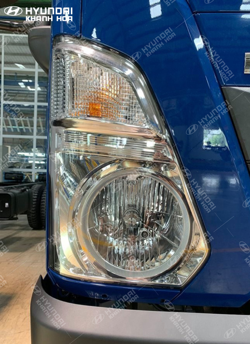 Cặp đèn pha halogen hai tầng cỡ lớn nổi bật phía trước cabin, kết hợp với hệ thống đèn phụ gồm đèn sương mù phía dưới và xi nhan hai bên, giúp hiệu quả chiếu sáng được cải thiện.